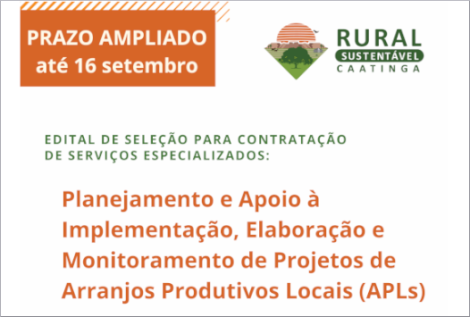 Todas as informações necessárias para a participação no processo concorrencial constam do documento “Ato Convocatório – Concorrência No 001/2021”, publicado no dia 18 de agosto de 2021 no site do Projeto Rural Sustentável Caatinga, seção Projeto / Documentos do Projeto (LINK). Os documentos de Habilitação, a Proposta Técnica e a Proposta de Preço deverão ser entregues até às 23:59h do dia 16 de setembro de 2021, para o e-mail prs.caatinga20@fbds.org.br.
